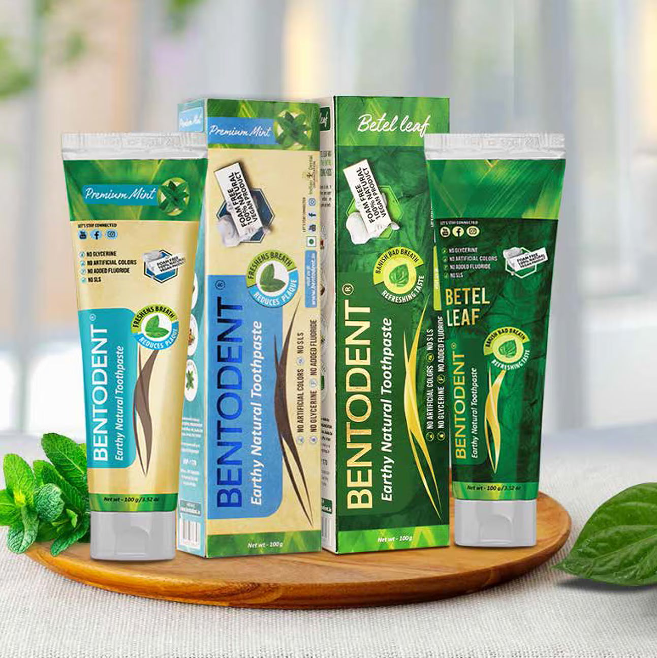 WORLD'S FIRST TOOTHPASTE POWERED WITH GOODNESS OF BETEL LEAF | Bentodent Leaf Organic Toothpaste | Bentodent Betel Leaf Organic Toothpaste is SLS Free, Fluoride-free, Gluten-free, No artificial colors, Organic & Vegan.